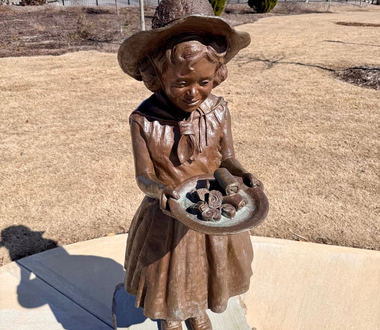 AND I had an outing on Sunday! My sister took me to a sports trading card "rip night" (which was really on Sunday afternoon). I had fun buying some cards and enjoying the atmosphere of being around other sports trading cards collectors. And from there we went to the Little Debbie Park. The ubiquitous snack cakes are baked near here, and we wanted to explore a little. So we went by the park, though we only walked to the Little Debbie Statue since it was very windy. And we drove back to my house a meandering way through pretty farmland in a neighboring county.