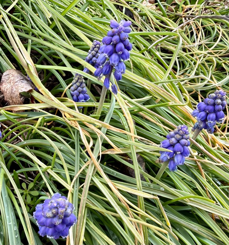 I'm grateful for fewer medical appointments. And for blooming flowers. These tiny grape hyacinths.